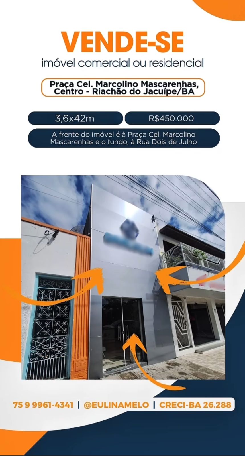 Imóvel comercial ou residencial à venda no Centro de Riachão do Jacuípe/BA!