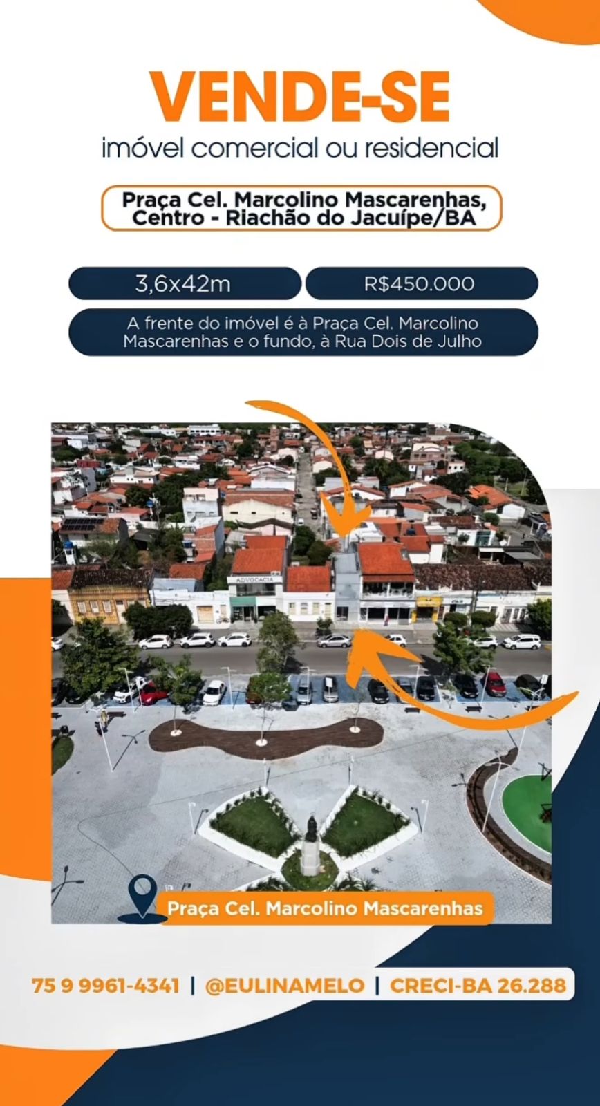 Imóvel comercial ou residencial à venda no Centro de Riachão do Jacuípe/BA!
